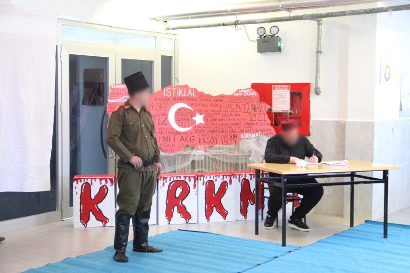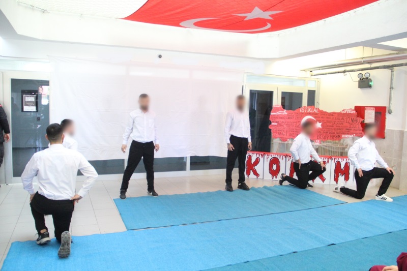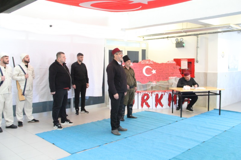 Açık Ceza İnfaz Kurumumuzda, bağımsızlığımızın sembolü İstiklal Marşı’mızın kabulünün 105. Yıl dönümü için eğitim ve öğretim servisince düzenlenen programda başta Cumhuriyetimizin kurucusu Büyük Önder Gazi Mustafa Kemal Atatürk olmak üzere, İstiklal Savaşı’mızın tüm kahramanları, bu topraklar uğruna can vermiş tüm şehitlerimiz, marşımızın bestekarı Osman Zeki Üngör ve İstiklal Marşı’mızın şairi Mehmet Akif Ersoy rahmet ve minnetle anıldı.